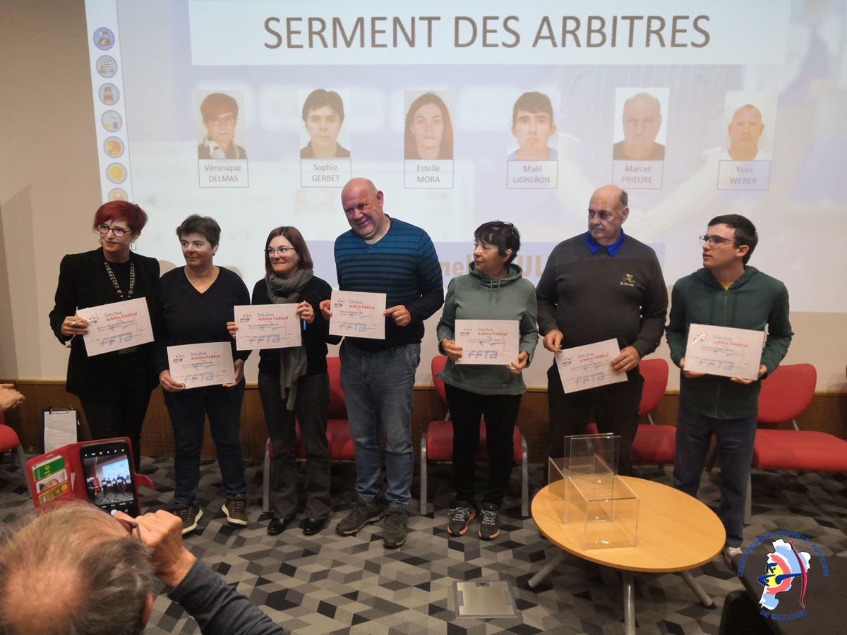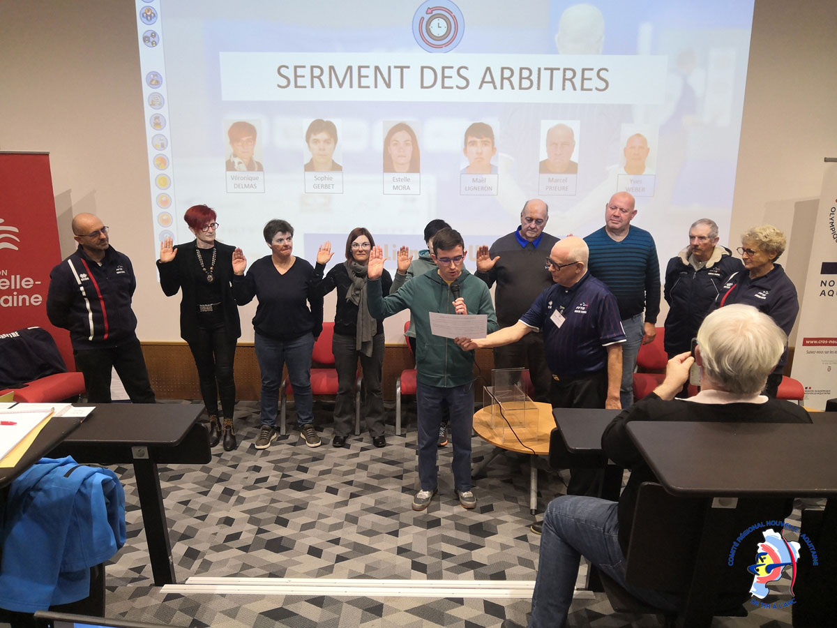 La matinée était consacrée à la présentation du Projet de développement de Lutte contre les discriminations, du Projet associatif du CRNATA et à la rétrospective de la saison 2022 (actions, résultats sportifs…). Ce fut aussi l’occasion pour les nouveaux arbitres de prêter serment et de remettre à Anthony Hillairet la médaille d’argent des arbitres.