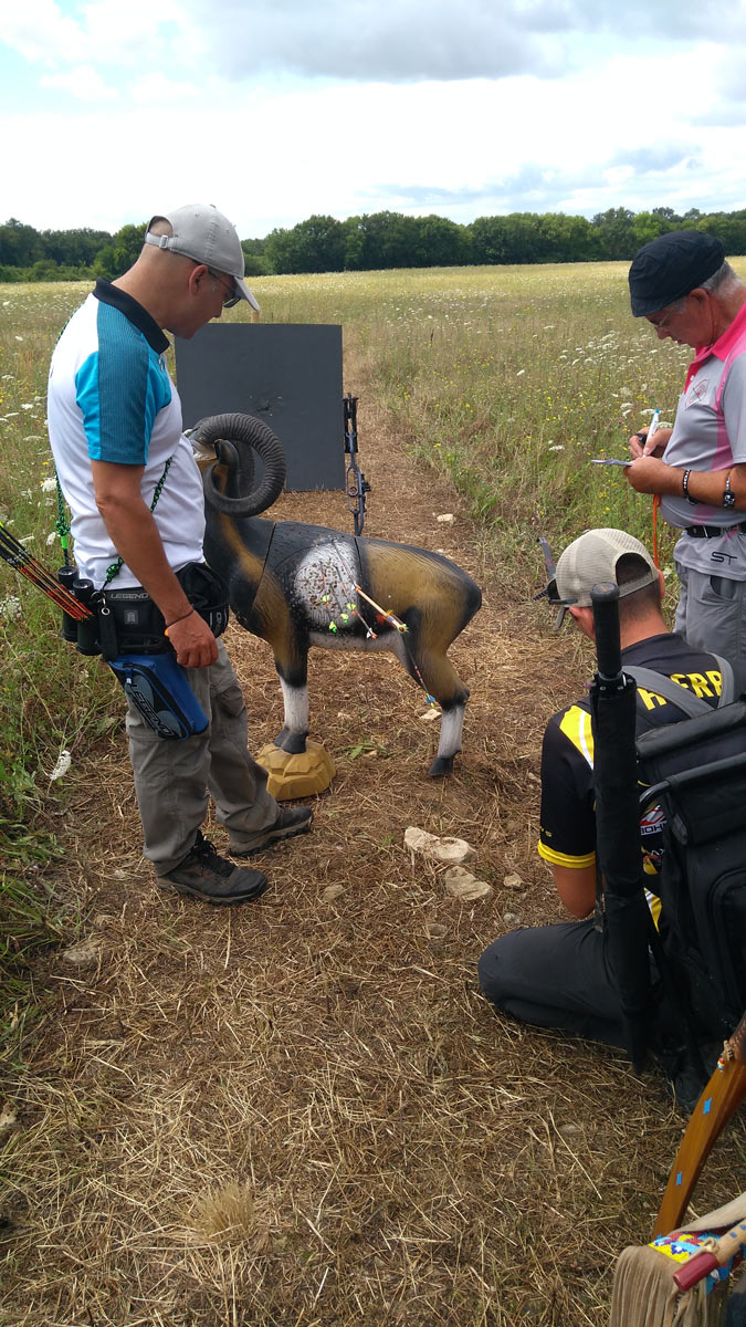 C’est sur la commune de Benon (17), au lieu-dit Dieulidon, que s’est déroulé le Championnat régional 3D, organisé par le club des archers de Virson. Pour ma part, première compète dans la discipline, pas déçu malgré la tâche ardue de cette belle découverte et mieux armé pour relater les faits et gestes des participants. Après que les premiers compétiteurs eurent étrenné ce nouveau parcours le samedi après-midi, par un temps de saison, les matinaux du dimanche, engagés pour s’emparer des titres régionaux, furent à pied d’œuvre dans le bois rafraichi par quelque ondée nocturne et les prés aux herbes folles où moult flèches furent enfouies à jamais. Heureusement, le temps resta au sec pour cette journée dominicale, terminée par un vent soutenu… Des cibles bien petites, ‘’au taquet’’ bien souvent, aux formes oblongues laissant peu de place à une estimation aléatoire, seuls les archers ayant une bonne expérience, un œil avisé et une technique infaillible ont pu tirer le meilleur de ce parcours et ainsi grimper sur le podium.
